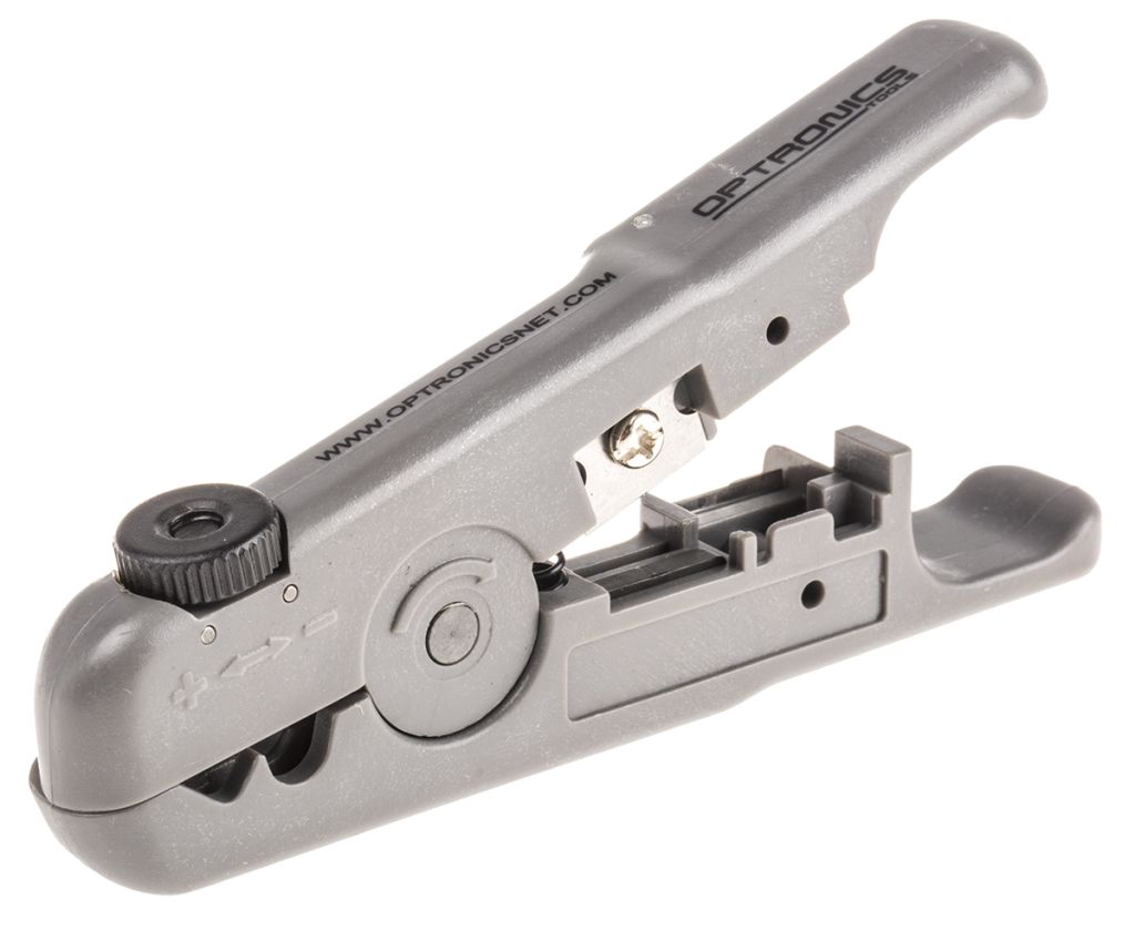 Universal stripping tool is ideally used for stripping the jacket from round Cat5 or Cat6 data cable such as UTP and STP with an adjustable blade it will strip from 3.2mm to 9mm which also includes flat cable, irregular out shape cable or even multi-conductor cable. The Stripper located at the rear will strip jackets from duplex fibre patchcord cable.