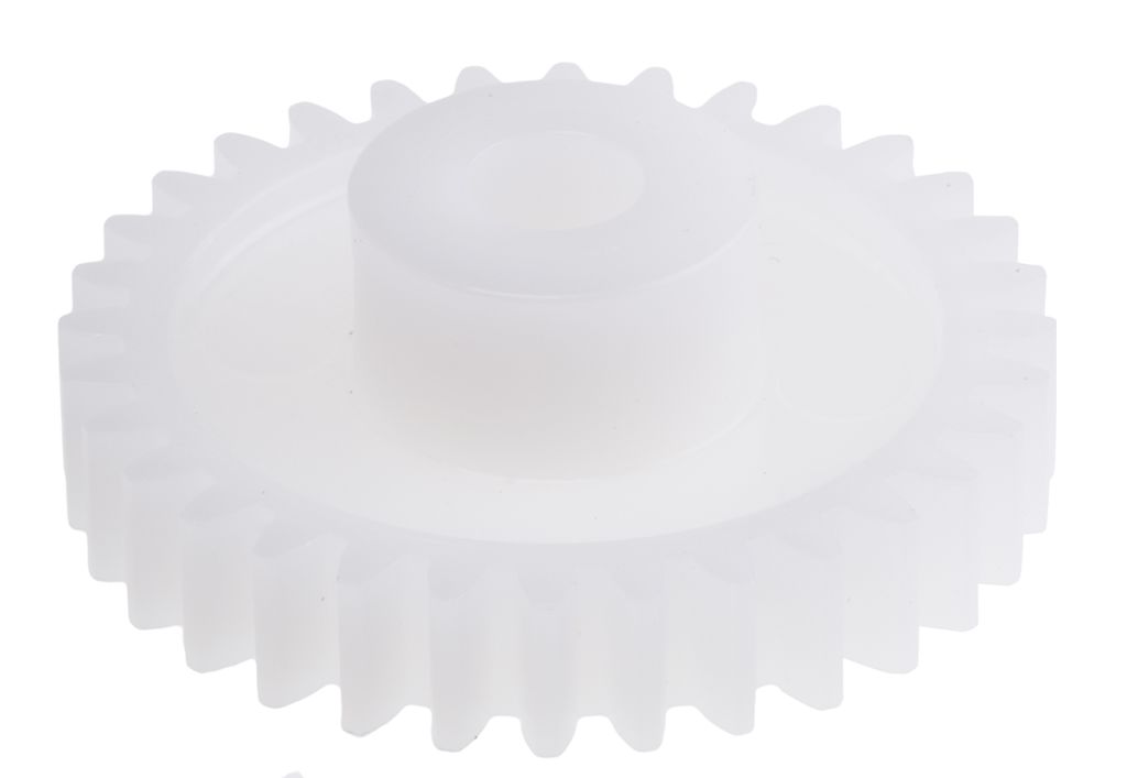 Injection moulded acetal copolymer spur gears providing a wide range of gear ratios.