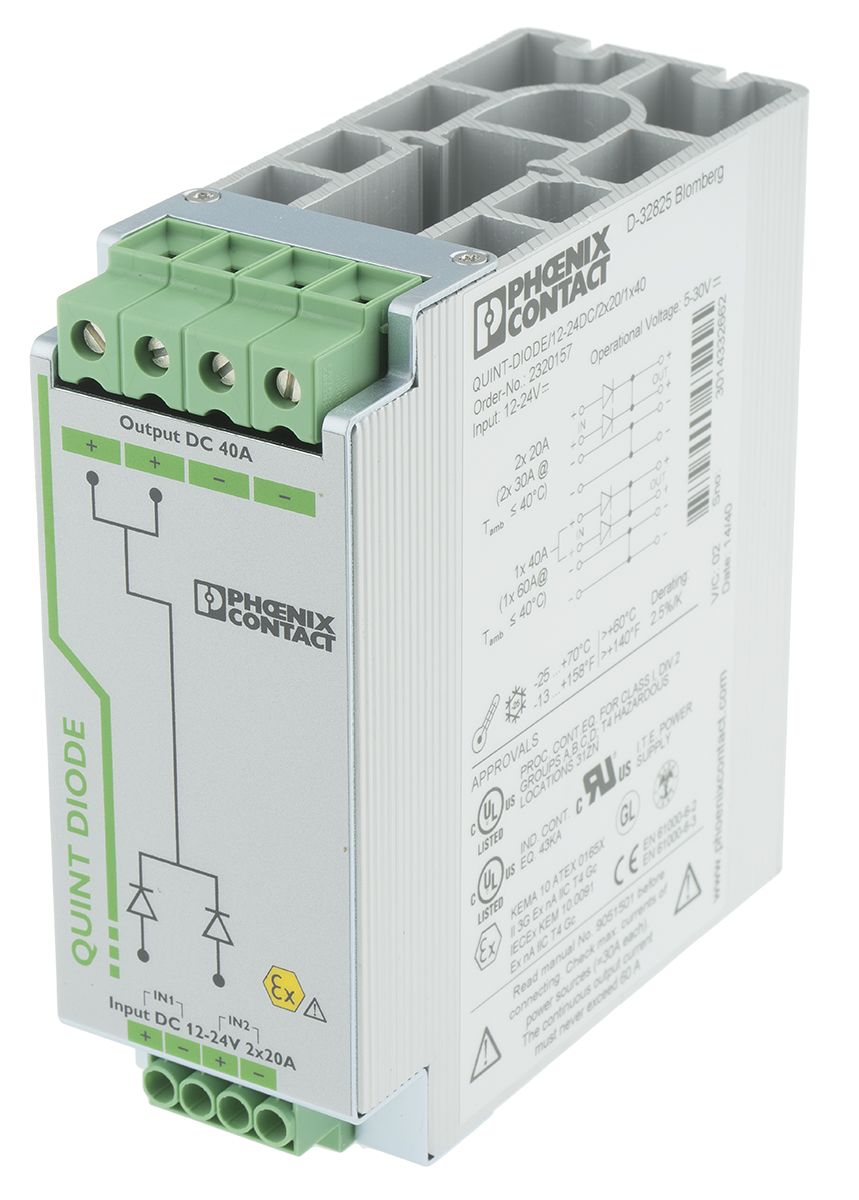 Phoenix Contact QUINT-DIODE/12-24DC/2X20/1X40 Series DIN Rail Diode Module, DIN Rail Diode Module for use with DIN Rail