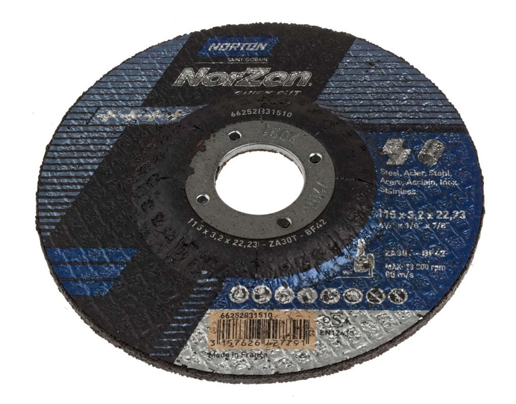 | Product description | Norton Cutting Disc Zirconium Cutting Disc, 115mm x 3.2mm Thick, P36 Grit, Norton Norzon Quick Cut, 5 in pack |