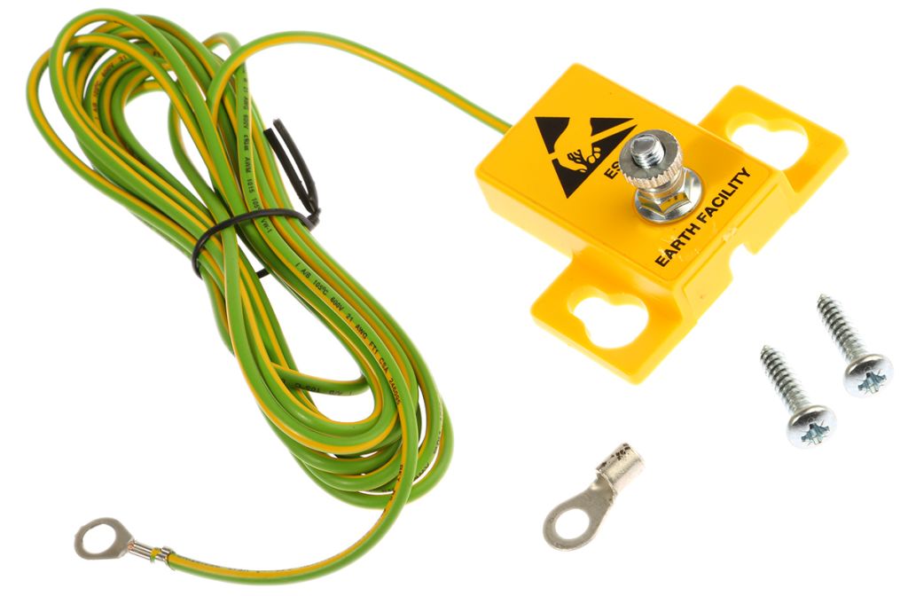 RS PRO earth facility bracket with a 2 m earth lead. Earth bonding brackets distribute electrical mains earth within the EPA and are ideal for workplaces where sensitive electronic equipment must be protected from static electricity.
