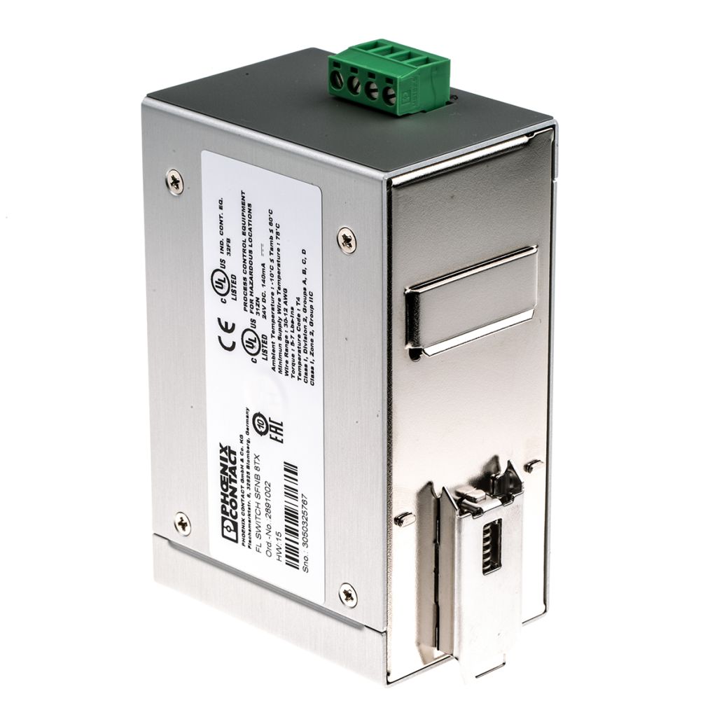 | Product description | Phoenix Contact Ethernet Switch, 8 RJ45 port, 24V dc, 100Mbit/s Transmission Speed, DIN Rail Mount FL SWITCH SFNB 8TX |