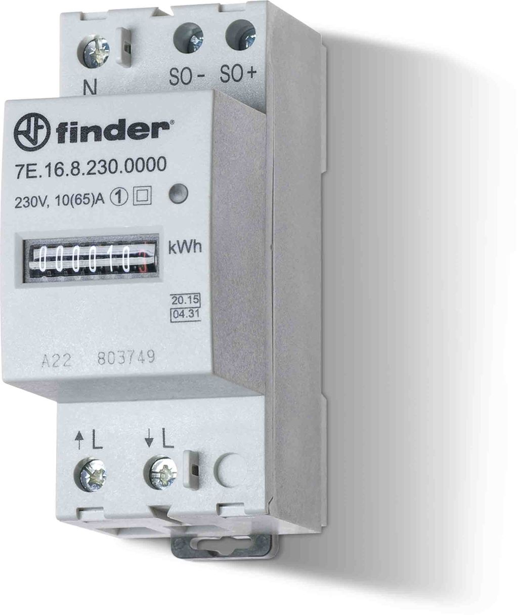 Finder 7E 1 Phase LCD Energy Meter with Pulse Output, 90.4mm Cutout Height