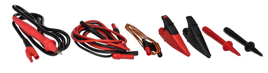 This model is supplied with a remote probe, test leads and alligator clips.