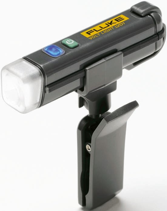 LED flashlight and non-contact voltage detector combined, Fluke presents the neat and compact Volt Light. When AC voltage has been detected the tester will glow blue, when the source has been detected the tester will glow red. Detected voltage and blue glow is based on voltages from 40 V AC to 300 V AC, 1 - 5" away from the source. Also featured is an ultra-bright white LED which produces up to 100,000 hours of bulb life for those darker environments, and a versatile clip for securing light to a wide variety of items such as hats, panels or pockets.