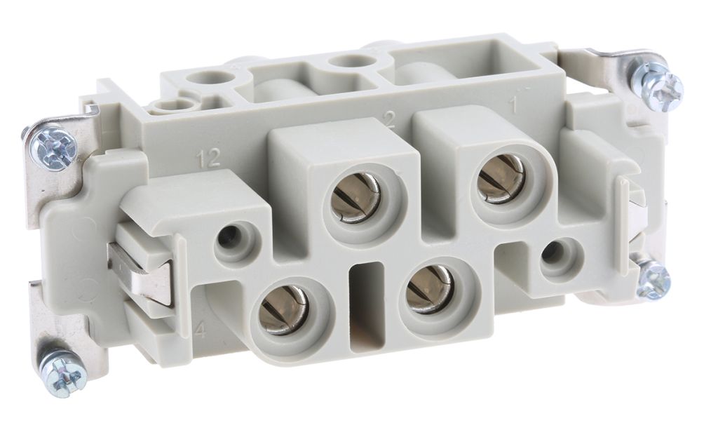 These Han- Com® inserts are available in current ratings from 10A to 100A. They are intended for use typically with hoods and housings; RS stock Nos. 181-0561, 181-0741, 181-0785, 363-8535, 363-8585 and their associated ranges. These hood and housing ranges are associated to a specific Harting 'Size' number identifier