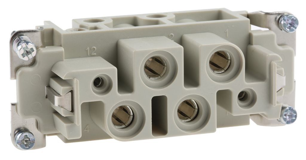 These Han- Com® inserts are available in current ratings from 10A to 100A. They are intended for use typically with hoods and housings; RS stock Nos. 181-0561, 181-0741, 181-0785, 363-8535, 363-8585 and their associated ranges. These hood and housing ranges are associated to a specific Harting 'Size' number identifier