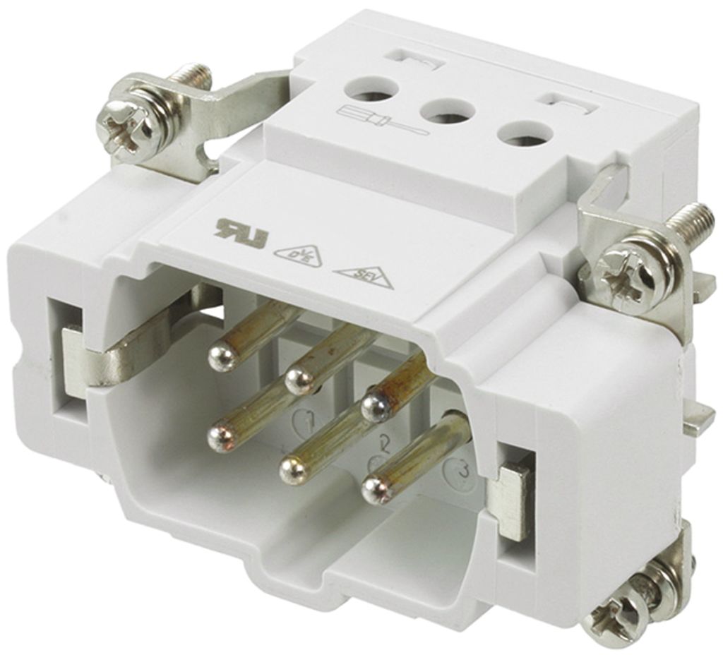 TE Connectivity HE Heavy Duty Power Connector Insert, 6 contacts, 16A, Male