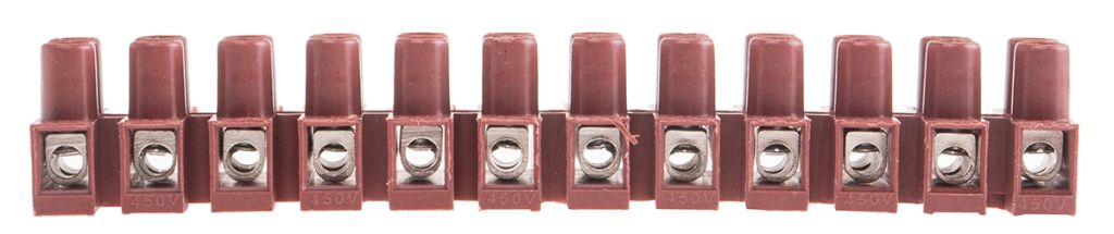 RS semi-rigid high temperature (160°C) polyamide/glass fibre terminal blocks with wire protector, nickel plated brass inserts and galvanised steel screws which are captive and raised for easy wiring.