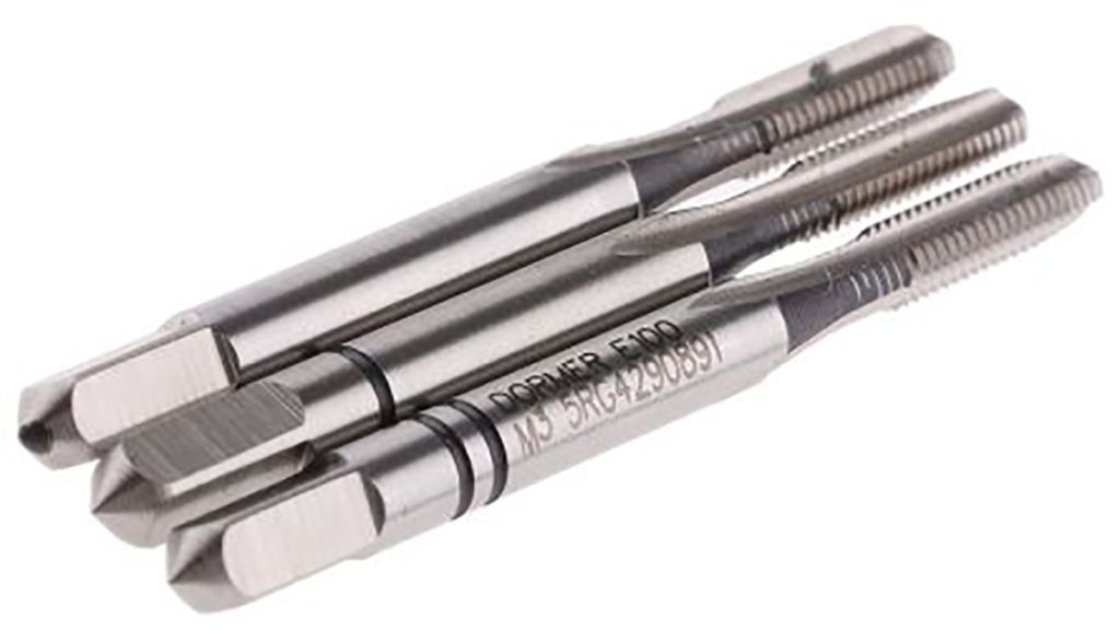 A set of metric pitch HSS hand tap bits offered in a 3 part set (taper, intermediate and finishing tap bits).