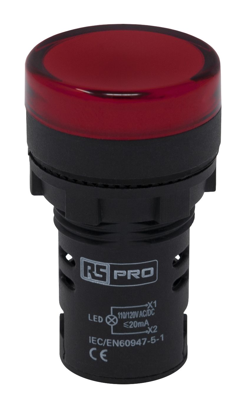 | Product description | RS PRO, Panel Mount Red LED Pilot Light, 22mm Cutout, IP65, 110 V ac |