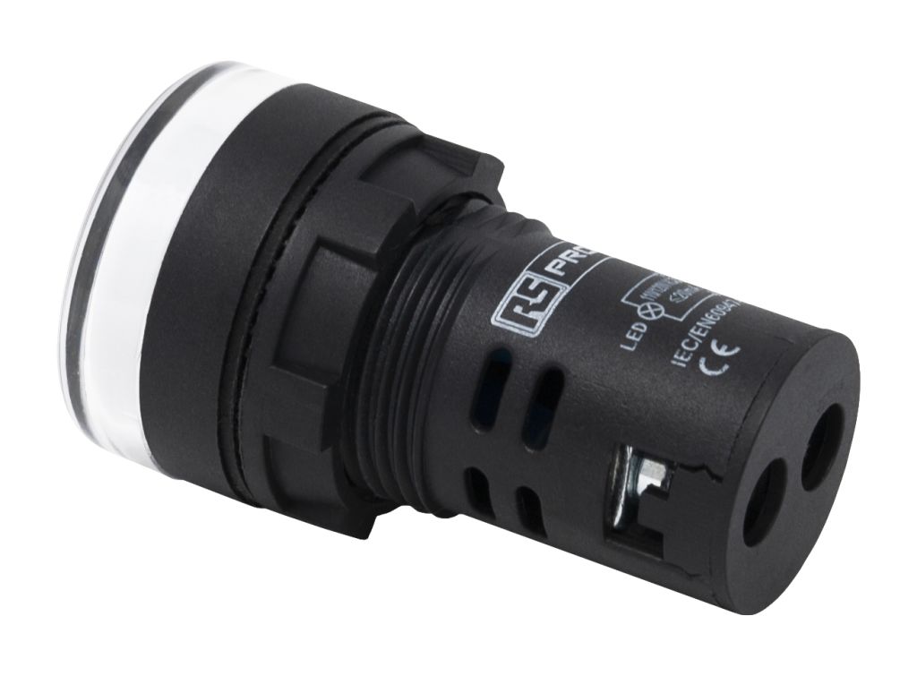 Product description RS PRO, Panel Mount White LED Pilot Light, 22mm Cutout, IP65, 110V ac
