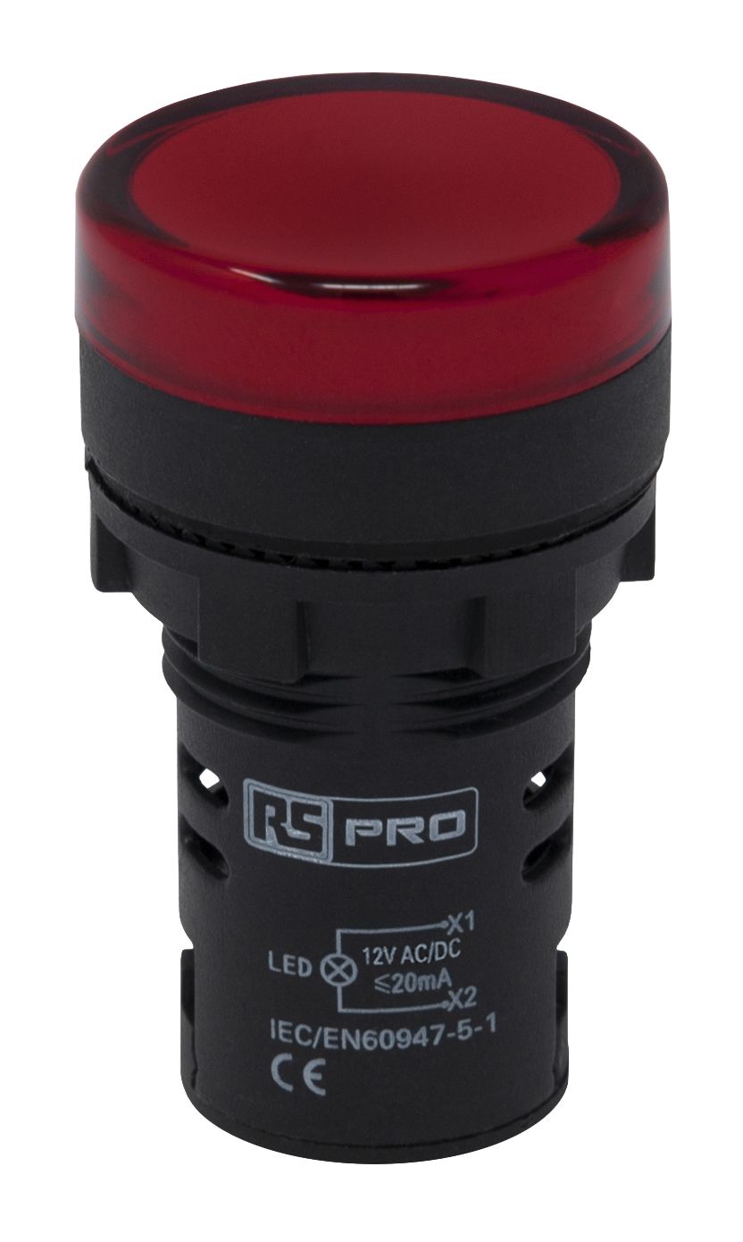| Product description | RS PRO, Panel Mount Red LED Indicator, 22mm Cutout, IP65, 12V ac/dc |