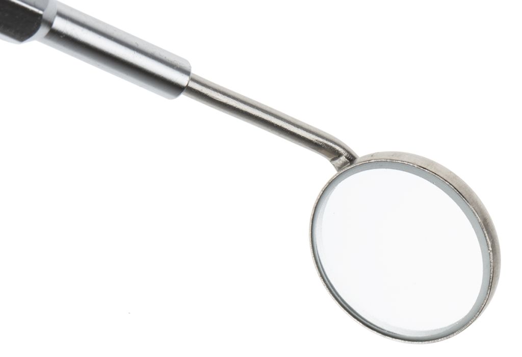 RS PRO inspection mirror which has a chrome metal handle and mirror mount and a diameter of 20 mm. These hand-held mirrors are perfect for the inspection of inaccessible areas and hard to reach places for general inspection purposes.