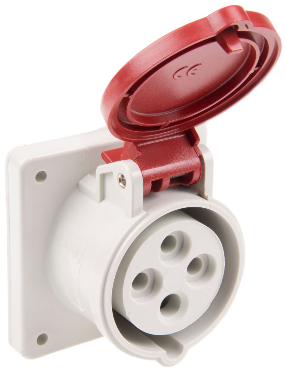 Product description Scame IP44 Red Panel Mount 3P+E Industrial Power Socket, Rated At 16A, 415.0 V