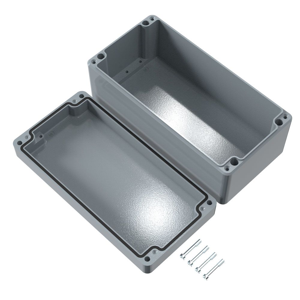 Aluminium enclosure consisting of lid, seal, Including Stainless Steel screws base with 2 or 4 earthing screws.