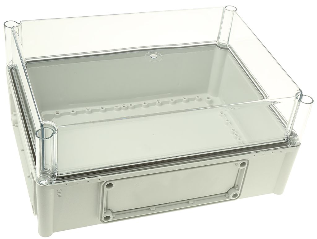 Fibox EK series enclosure, ideal for housing electrical equipment in either a single enclosure or a flexible modular system. These polycarbonate enclosures are impact resistant, self-extinguishing and resistant to most acids and alkalis. The temperature range of the enclosure material is -40°C to +120°C, (+80°C for continuous use) and the flammability rating is UL94-V2.