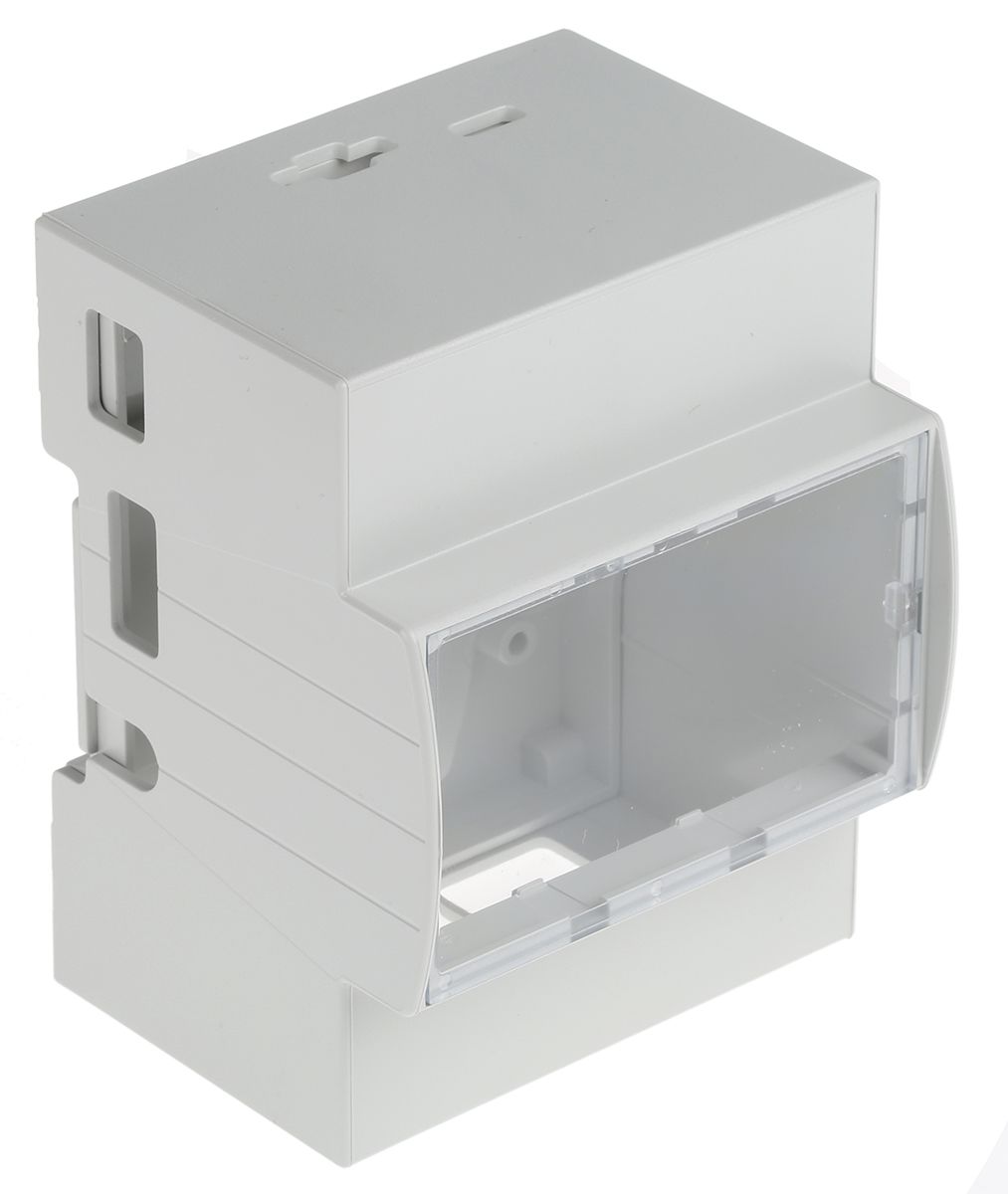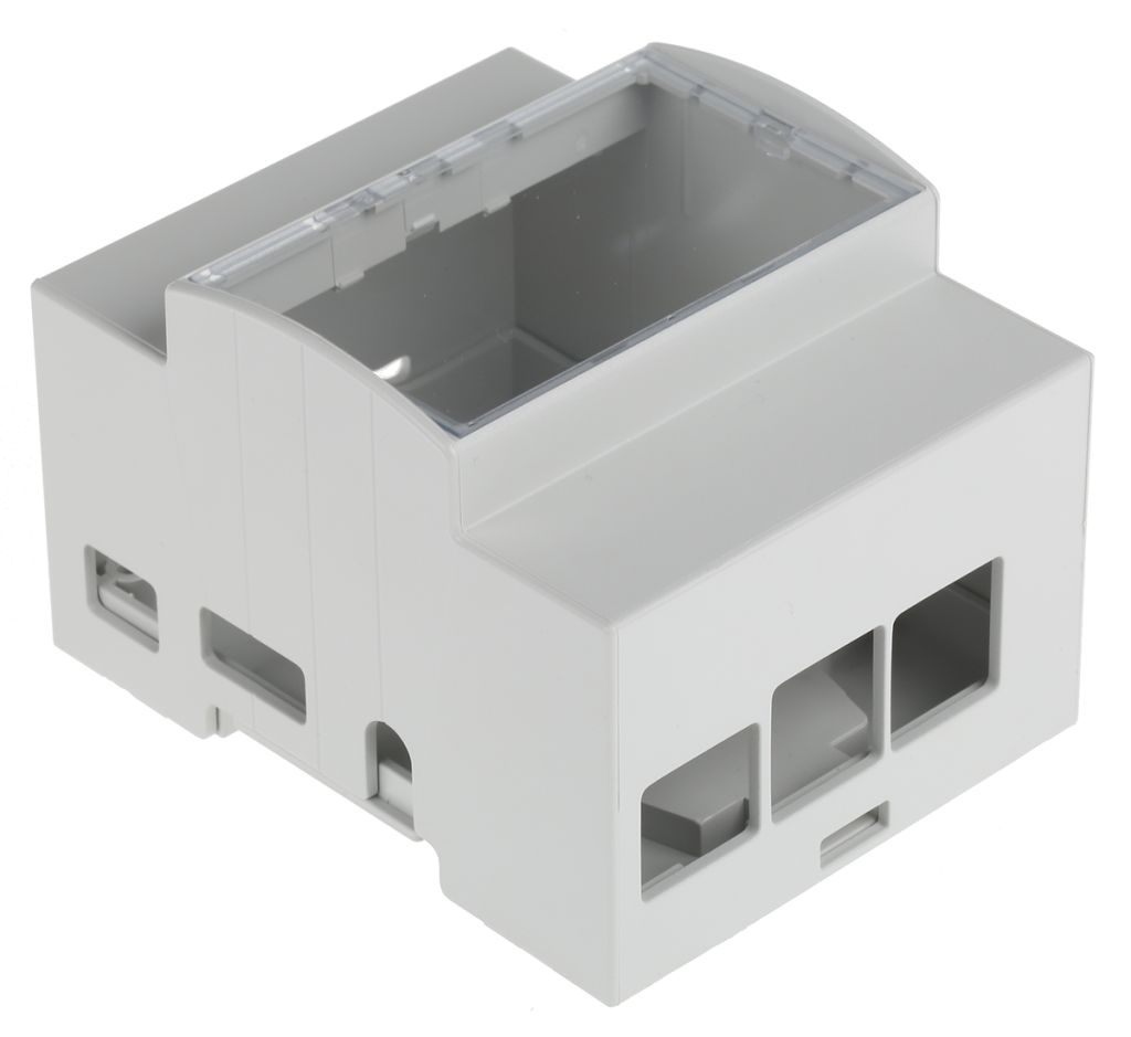 From Italtronic the DIN (EN 60715) Modulbox mounting case designed to enclose and protect your Raspberry Pi Model B+ development board. This DIN Rail mount Raspberry Pi case is designed according to DIN 43880 to meet the requirements of a range of applications including heating control, lighting control and energy metering. The RPi case is made from UL94V-0 self-extinguishing plastic and consists of an enclosure body and base with a transparent cover. The transparent cover of this Raspberry Pi case can be removed to allow easy access to the RPi development board, GPIO pins and other internal components. This Raspberry Pi case has plenty of room inside for fitting expansion boards onto the Pi GPIO header. A DIN Rail hook is provided which attaches to the case to allow quick mounting. Cut-outs on the front panel and body of the enclosure are provided to accommodate USB and Ethernet ports and connectors
