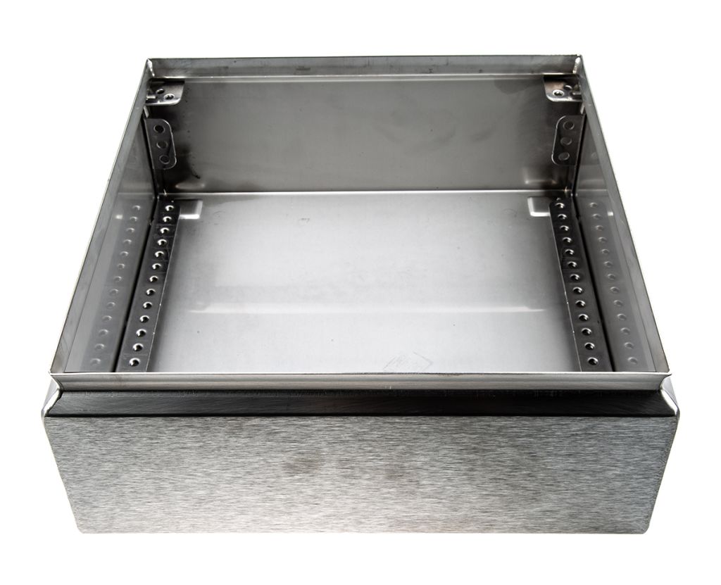 The KL Series enclosure from Rittal is folded and welded from a single piece of 1.25 mm stainless steel. The cover of the enclosure has a channel with a foamed-in PU seal providing IP66 protection. The inside of the enclosure has profiles with mounting holes for easy installation of a chassis plate or DIN rail.