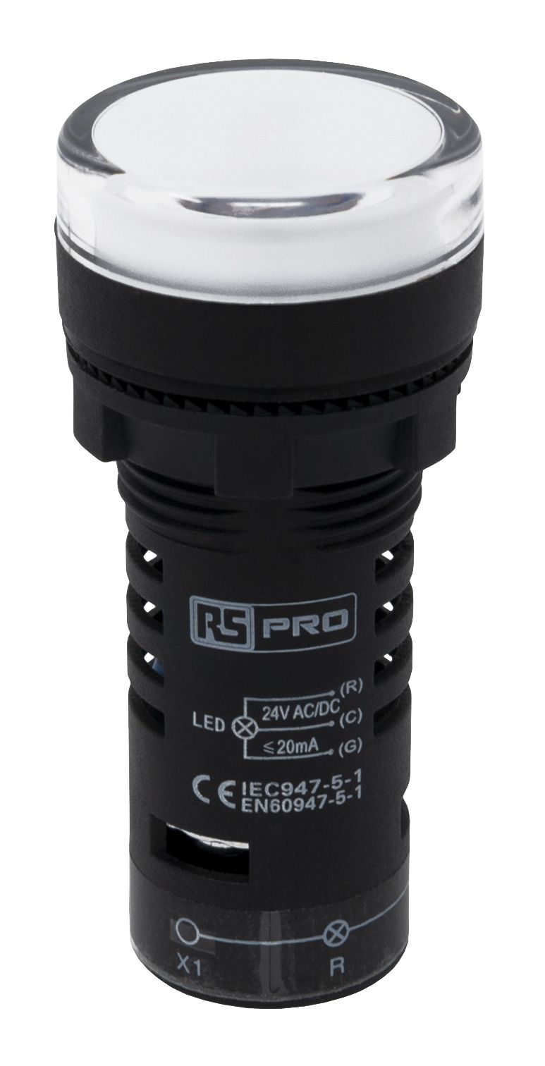 | Product description | RS PRO, Panel Mount Red/Green LED Indicator, 22mm Cutout, IP65, Round, 24V ac/dc |