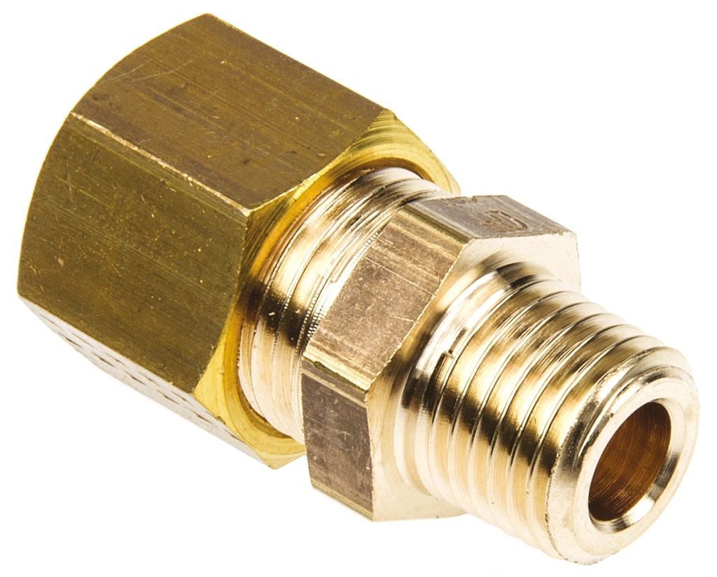 Brass fittings for fluid distribution. Suitable for connecting steel, copper and nylon tubing. Applications include compressed air, hydrocarbon, water and lubrication.