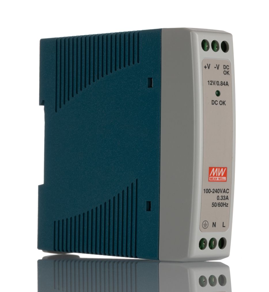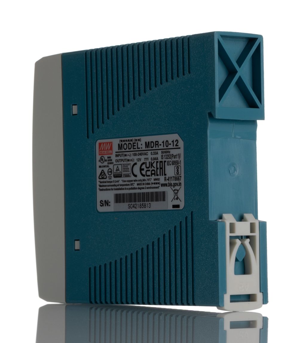 | Product description | Mean Well MDR Switch Mode DIN Rail Power Supply 85 → 264V ac Input, 12V dc Output, 840mA 10W |