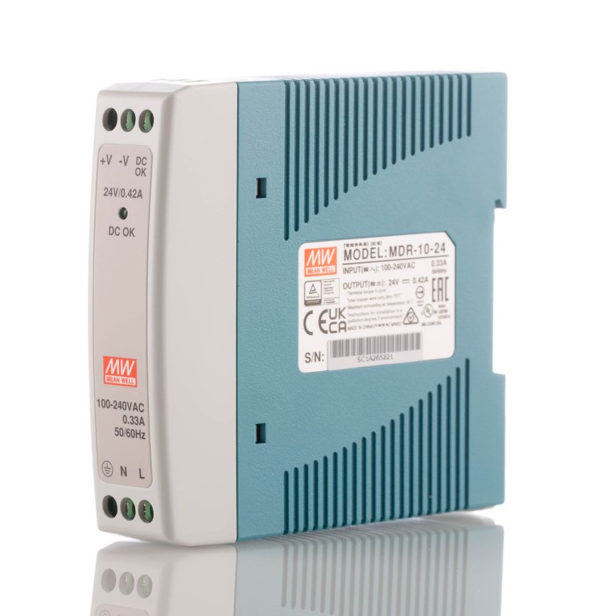 Product description Mean Well MDR Switch Mode DIN Rail Power Supply 85 → 264V ac Input, 24V dc Output, 420mA 10W