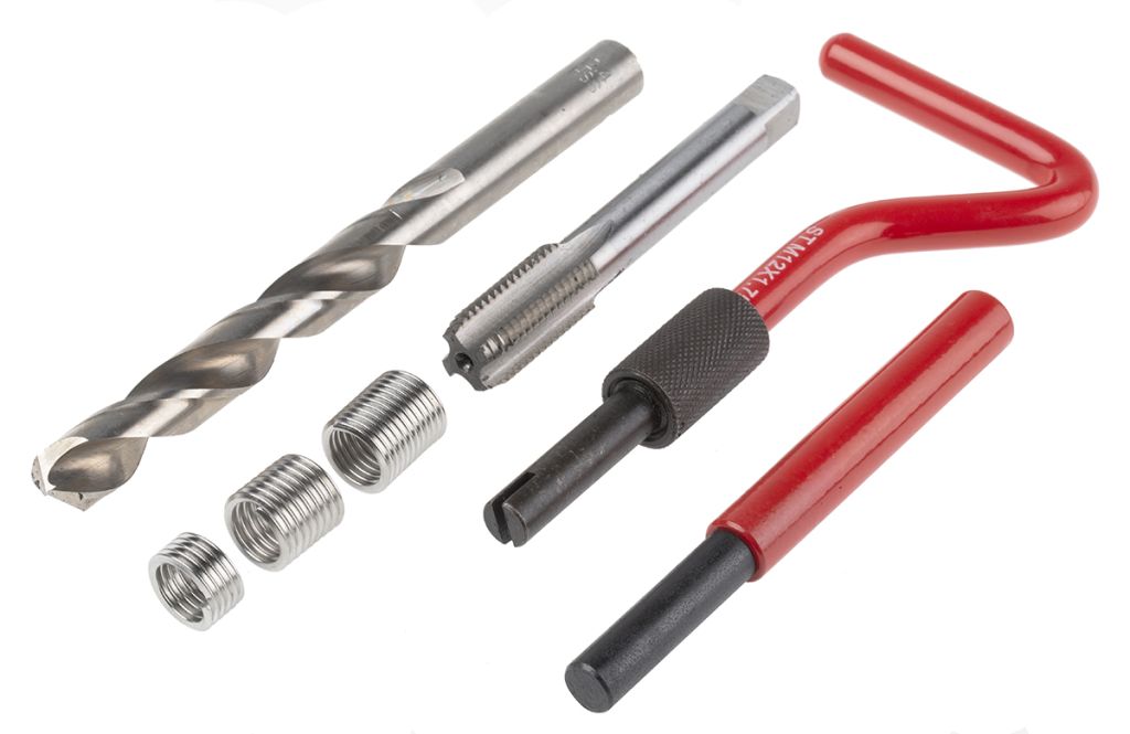 Thread repair kits are versatile kits designed to repair stripped or damaged internal threads in various sizes that have been damaged by over torque, wear and corrosion. They commonly include a collection of tools including a drill, tap, inserts, mandrels and more, ensuring you have the required tools to hand. Thread repair kits are widely used in: