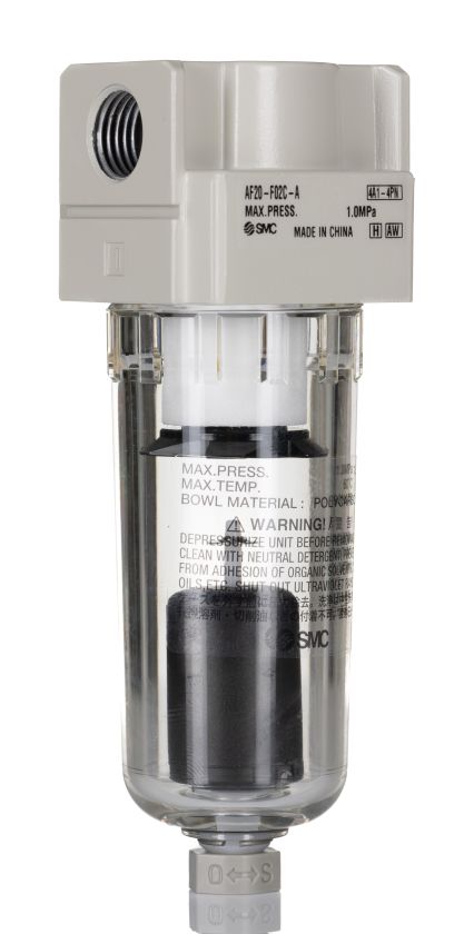 SMC AF series 5μm G 1/4 0.1MPa to 1 MPa, 1.5 MPa Pneumatic Filter with Automatic drain