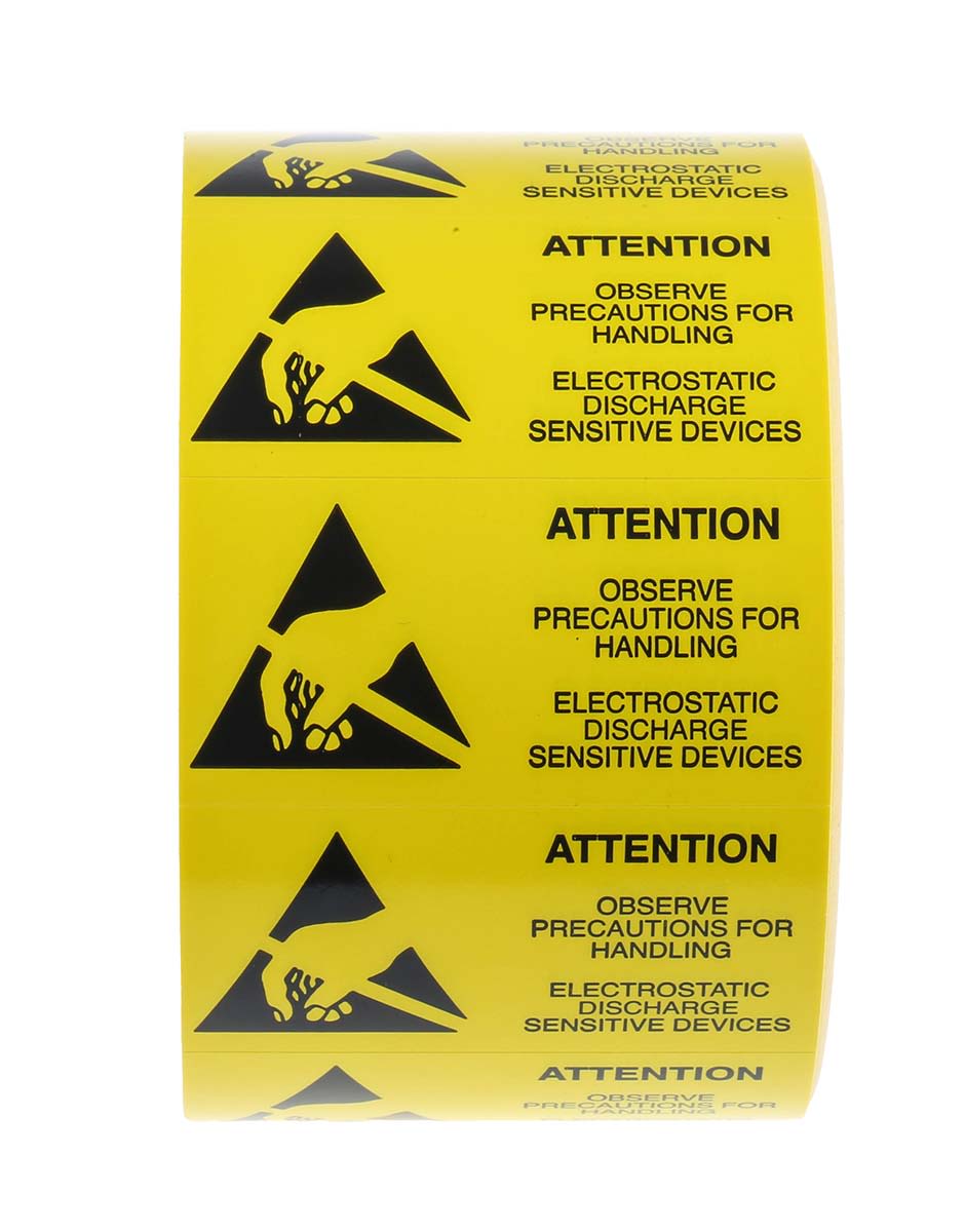 | Product description | RS PRO Yellow Paper ESD Label, Attention-Text 45 mm x 25mm |