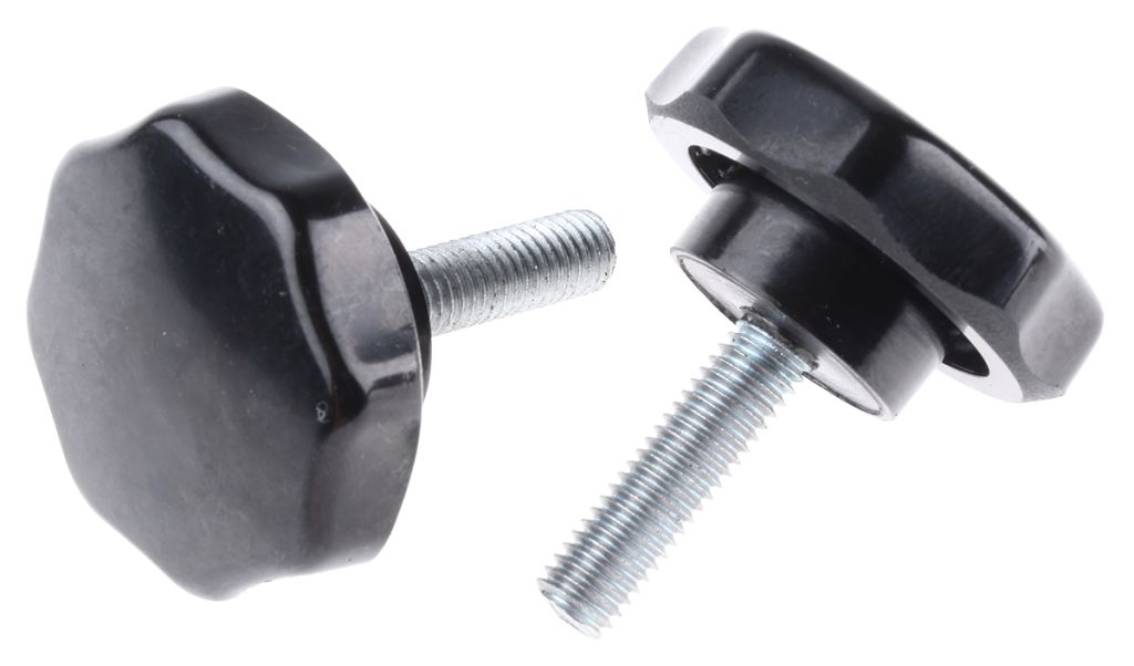 These multiple lobed handwheels – also known as star shaped handwheels – provide an easily-gripped shape, with a varying number of lobes depending on the grip and pressure required. The knobs are fitted with either a protruding screw insert (male), made from a combination of impact-resistant thermoplastic bodies and zinc-plated steel inserts, or a threaded brass recess (female). Zinc-plated steel and brass both provide wear resistance for the threads to ensure that the threads last throughout general use and are not easily damaged or sheared.