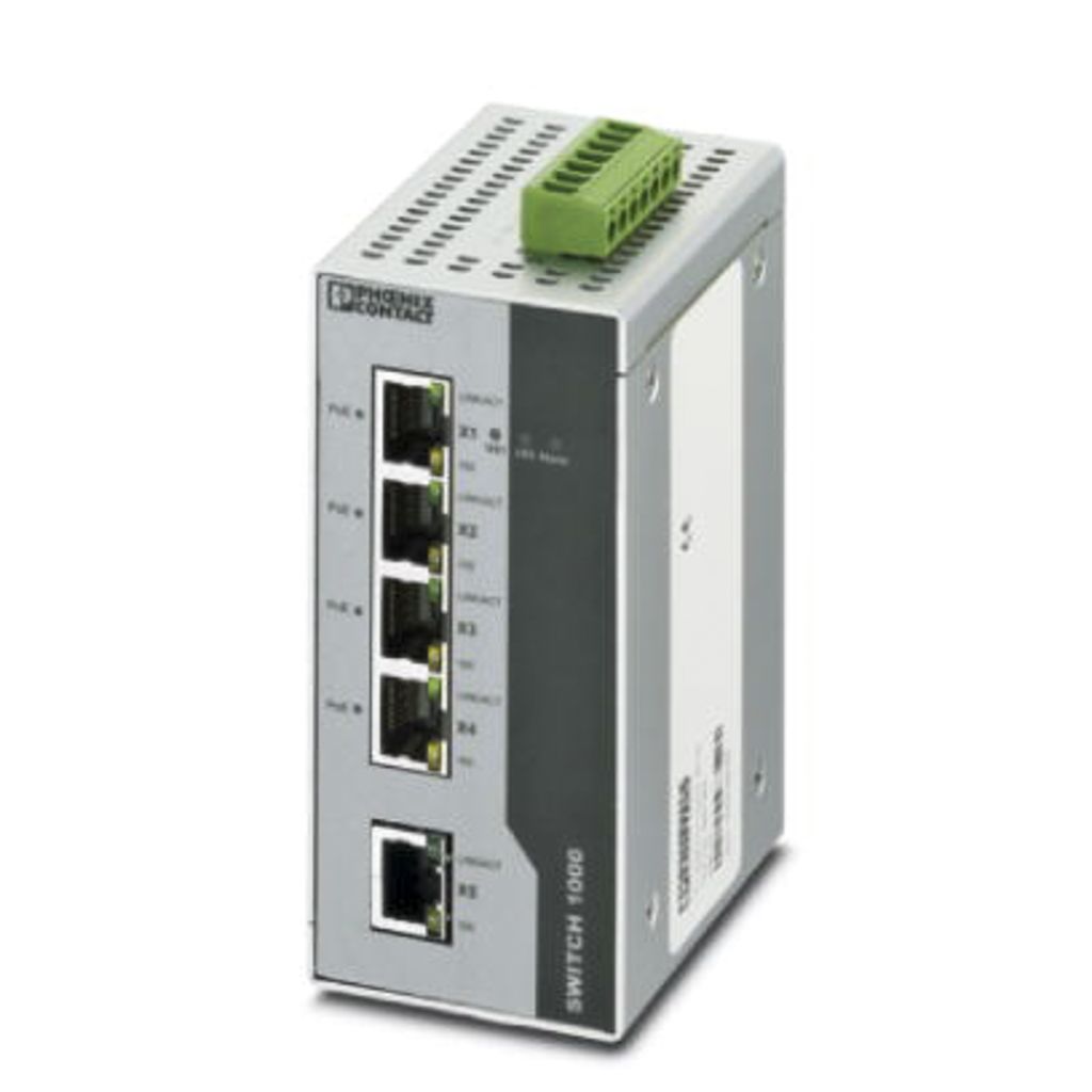 | Product description | Phoenix Contact Ethernet Switch, 5 RJ45 port, 24V dc, 100Mbit/s Transmission Speed, DIN Rail Mount FL SWITCH 1001T-4POE |