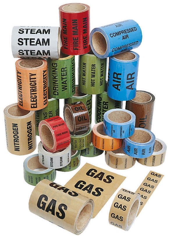 Unmarked pipes represent a hazard. Marking them with tapes will identify and display their contents. Such identification is covered by BS 1710. The Health & Safety (Safety Signs and Signals) Regulations place great emphasis on the labelling of pipework. The Regulations state that pipeline marking tapes and labels are required for use at points where employees are likely to be exposed to the contents of the pipework, for example; sampling or filling points, drain valves and flanging joints.,BS 1710: 1984 Identification of Pipelines and Services and BS 4800 provide guidance on the use of different colours and safety signs to identify the contents of pipework and its associated risks.