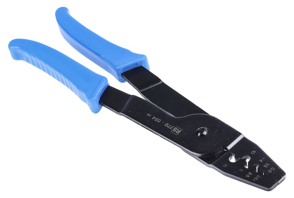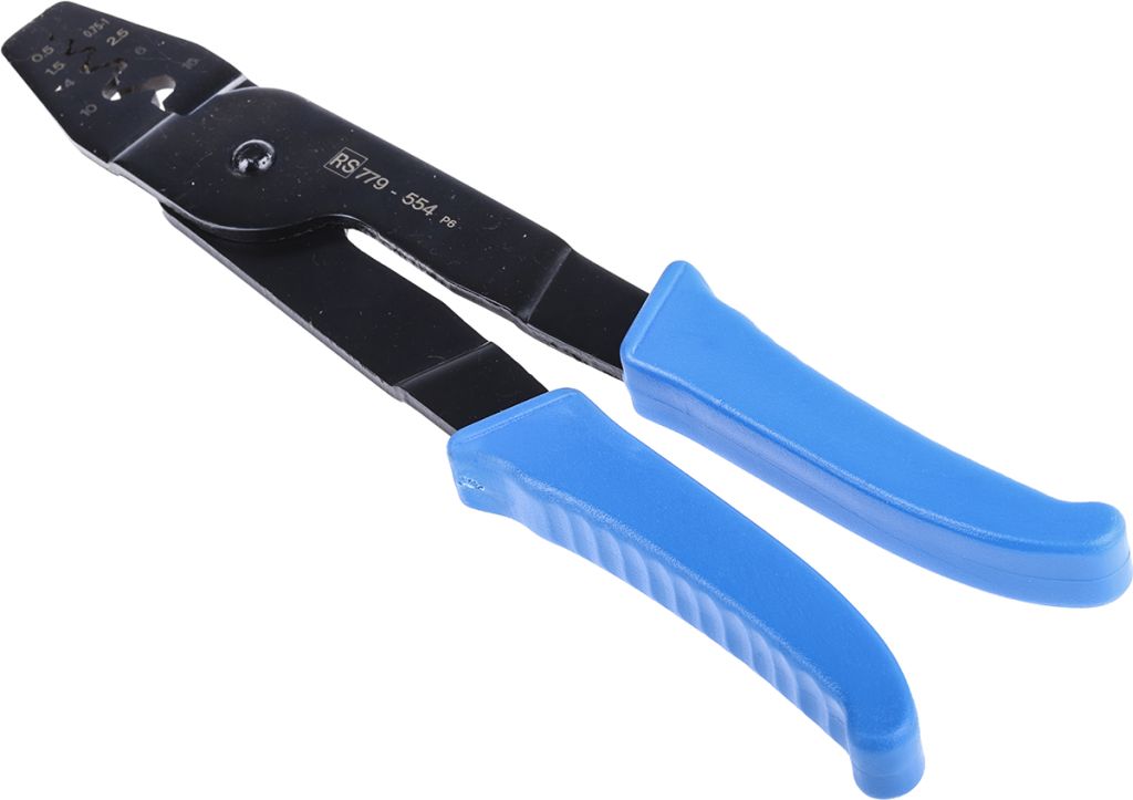 RS Pro crimp tool, designed for crimping bootlace ferrules. This professional tool offers wire range size of 0.5 16 mm2 with clear identifying marks on the head heads of the tool. A plier shape design and superb comfort in both hands deliver the perfect crimp every time.