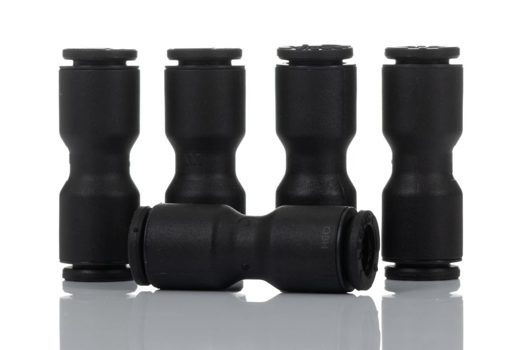 A range of push-in tube fittings for connecting various diameters of pneumatic hose. All fittings have a maximum pressure rating of 20 bar, an operating temperature range of -20 to +80°C, and nitrile rubber ’O’ rings for optimum sealing.