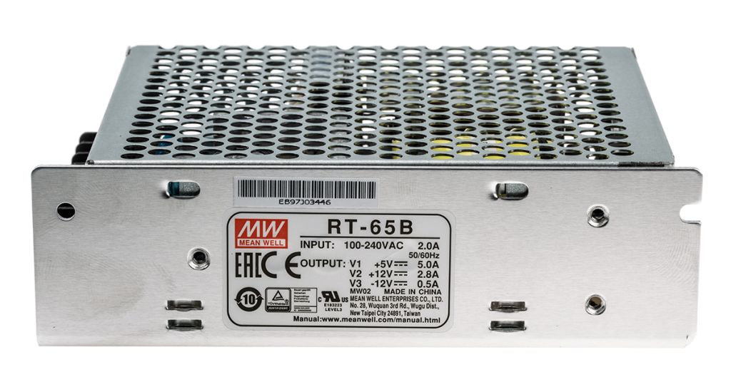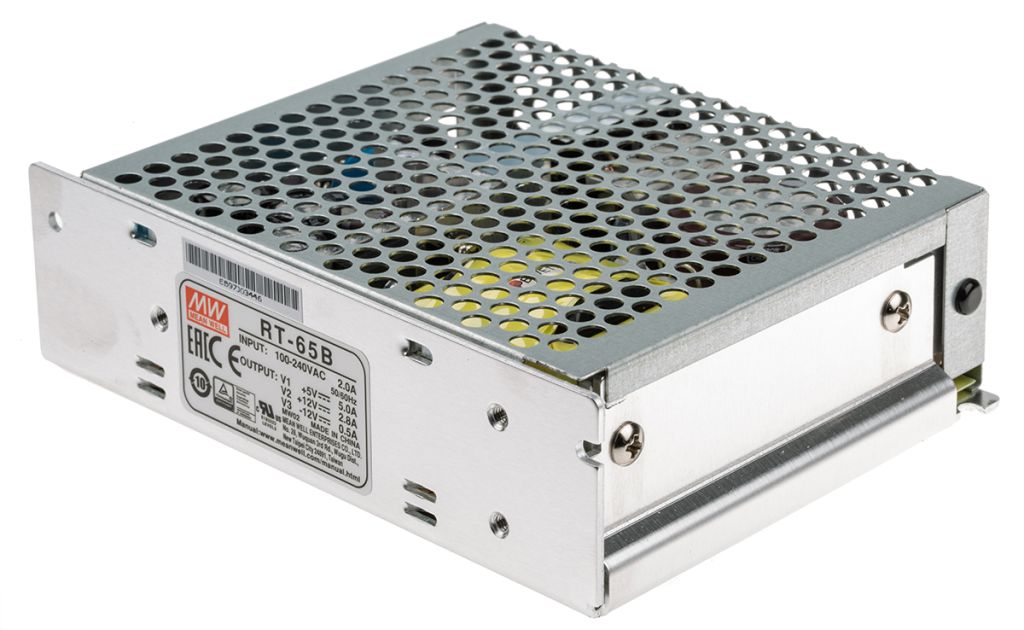 | Product description | Mean Well Embedded Switch Mode Power Supply SMPS, 5 V dc, ±12 V dc, 2.8 A, 5 A, 500 mA, 64.6W Enclosed |