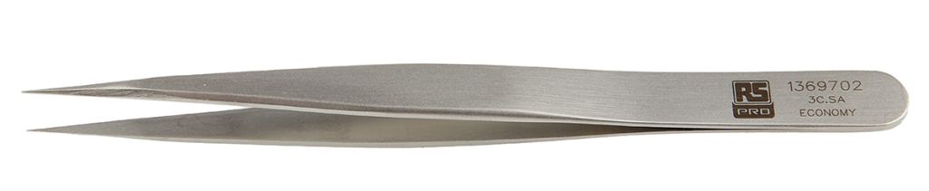RS Pro Premium Economy Tweezers. A series of economy tweezers specially designed for use with electronic and medical applications. Firm and offers a smooth stainless steel finish. RS Pro Premium Economy Tweezers are anti-magnetic/ anti-acid stainless steel.