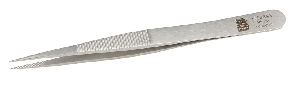 RS Pro Premium Economy Tweezers. A series of economy tweezers specially designed for use with electronic and medical applications. Firm and offers a smooth stainless steel finish. RS Pro Premium Economy Tweezers are anti-magnetic/ anti-acid stainless steel.