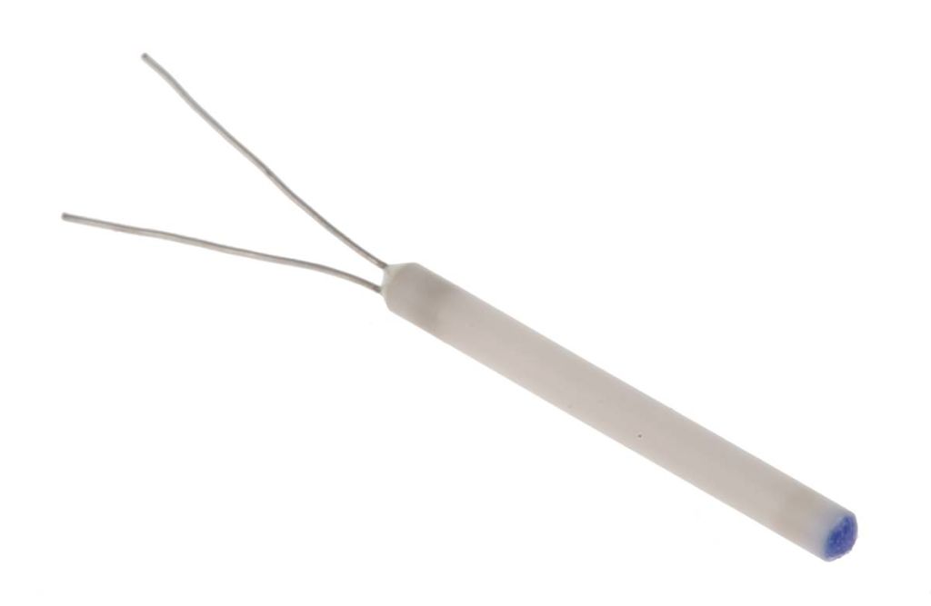 This wire wound PRT sensor element consists of a pure platinum wire which is wound into a miniature spiral. This wire spiral is then located inside axial holes in a high purity alumina ceramic rod. The design of Pt100 sensor elements gives the platinum wire freedom of movement when it expands and contracts in response to heating. This produces increased stability and accuracy in the final temperature as it eliminates anomalies in resistance which can be caused by constricted wires. The only drawback with these Pt100 elements is that they are vulnerable to shock and vibration