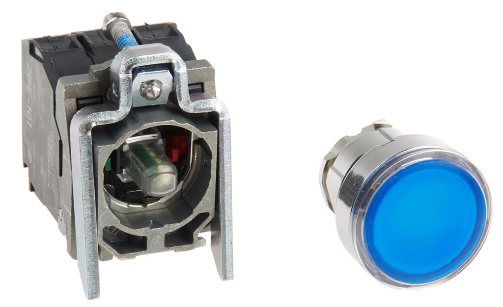 | Product description | Schneider Electric, Harmony XB4 Illuminated Blue Round Push Button, NO/NC, 22mm Momentary Screw |