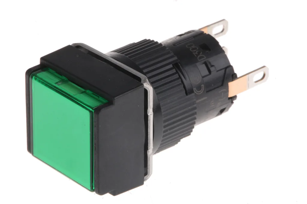• Illuminated monolithic push-button, rectangular in shape, with a flush style push button. Available in several different colours, including red, green and yellow.