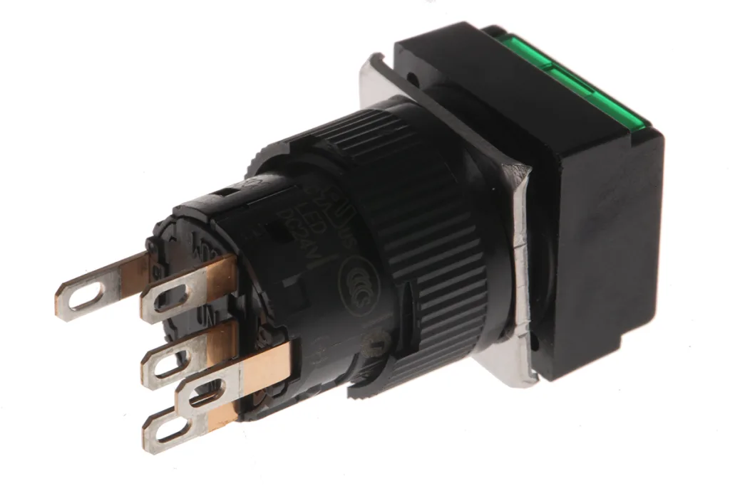 Schneider Electric, Harmony XB6 Illuminated Green Square Push Button, SPDT-NO/NC, 16mm Momentary Quick Connect, Solder