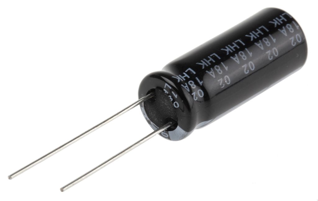 This RS brand LHK Series 105°C Axial Aluminium Capacitor features a safety vent construction design. Suitable for a variety of purposes, it is commonly used for communication equipment applications and for switching power supply.