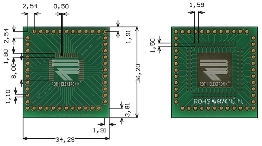 Adaption circuit board for TQFP44 & QFP44 (0.80 mm pitch)