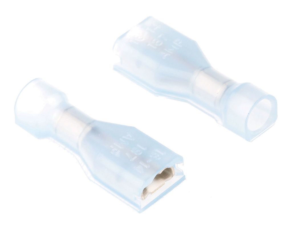 | Product description | TE Connectivity Ultra-Fast .187 Blue Insulated Female Spade Connector, Receptacle, 4.75 x 0.51mm Tab Size, 1.3mm² to |