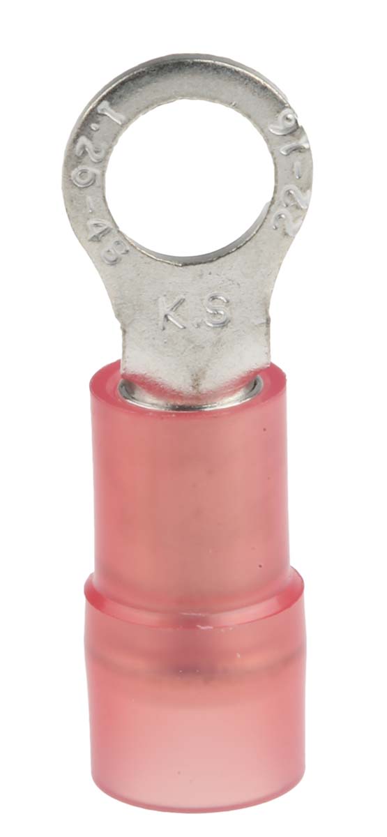 | Product description | RS PRO Insulated Ring Terminal, M4 (#8) Stud Size, 0.5mm² to 1.5mm² Wire Size, Red |