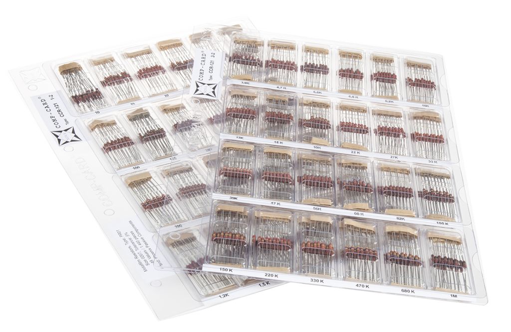 The CCR-121 Series resistor kit has values from 10Ohm’s to 1MOhm’s (E6 Series).
