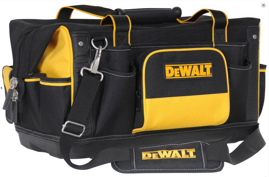 DeWALT has created a series of durable tote/ tool bags with storage space to support just about any hand tool. These professional tool bags have multiple internal and external compartments, a base reinforced with polypropylene to protect from wet surfaces plus handles and a shoulder strap for easy portability.