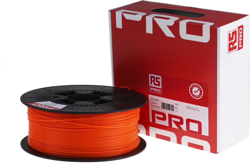 | Product description | RS PRO 1.75mm Fluorescent Orange PLA 3D Printer Filament, 1kg |