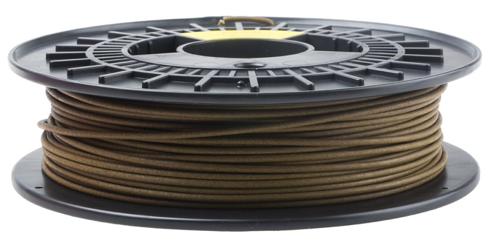 WOOD is a modified PLA based type of filament, that smells and feels like wood. The filament is a bit brittle, but tough enough to be supplied in reels of 300 gram to 1kg. It prints easy, but we advise a slightly bigger nozzle to avoid blocking. Due to a low shrinkage factor WOOD will not deform after cooling. Poly Lactic Acid is a biodegradable plastic made from renewable natural resources and one of the most popular materials for 3D printing